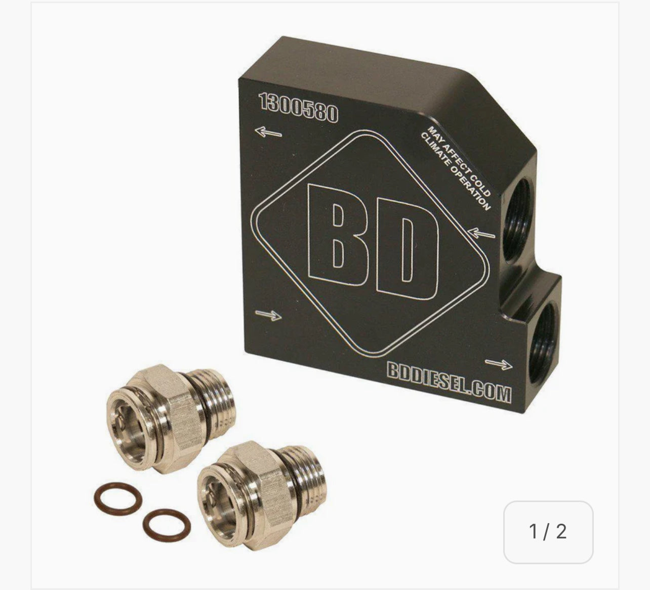 Debris in the stock cooler bypass valve can cause it to jam the internal valve keeping it in recirculation mode. When this happens the transmission temperature will rise and can lead to overheating and premature transmission failure. The BD Cooler Bypass Delete keeps the transmission cooler operational all the time and eliminates this failure-prone item.