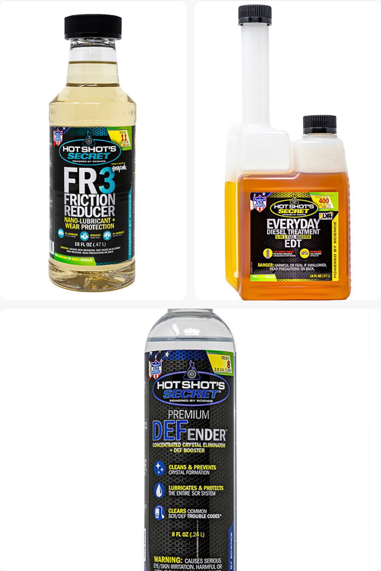 The Hot Shot’s Secret Diesel Daily Driver Protection Kit is built to address those exact issues using three of HSS’s most trusted additives. This kit is ideal for stock or lightly modified diesel trucks used for commuting, towing, or long-term ownership.