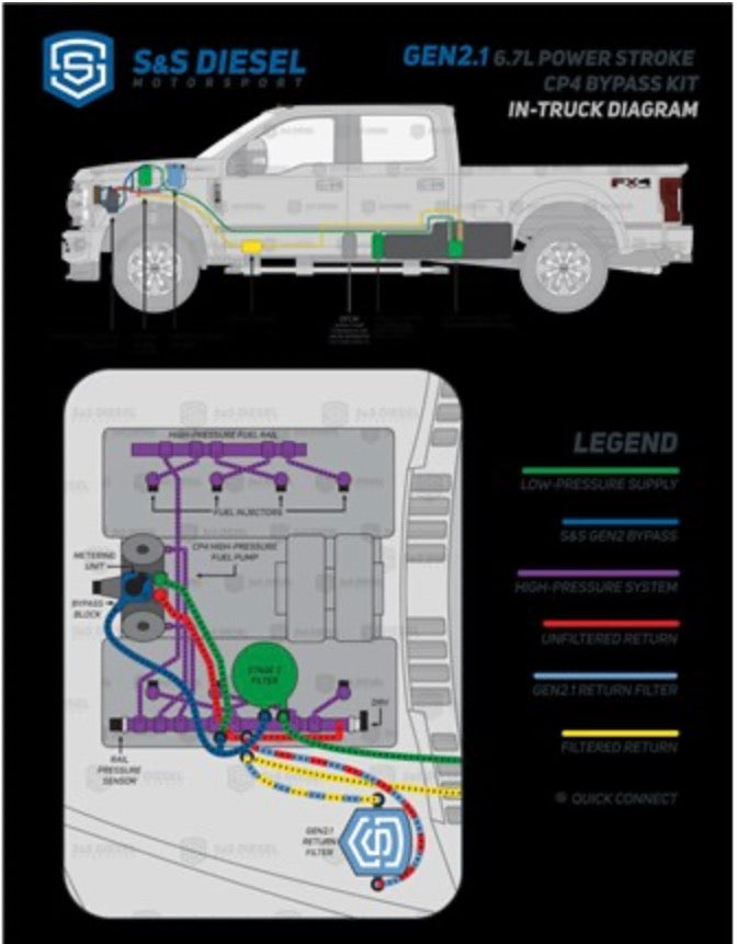 Product Name: S&S Diesel Motorsport Gen2.1 CP4.2 Bypass Kit with Return Filter Assembly (also known as DPK Kit or Disaster Prevention Kit)